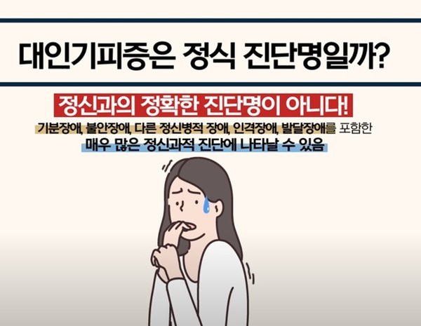 대인기피증이라는 말을 들어 보셨나요? 굉장히 흔하게 쓰이는 표현 중 하나입니다. 말 그대로 대인-사람을 대하는 것을 기피하게 되는 증상이라는 뜻입니다. 실제로도 주변에 대인기피증을 앓고 있다고 이야기하는 분들을 종종 보신 적이 있으실 것입니다. 또는 직접 대인기피증을 앓아 본 적이 있으실 수도 있습니다. 그만큼 많은 분들이 호소하고 있는 증상이기도 합니다.