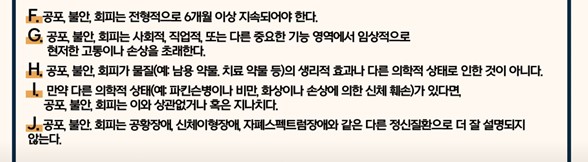 이러한 증상이 심해 아래와 같은 정도에 해당한다고 한다면 정신과적으로는 사회불안장애(Social Anxiety Disorder)라고 진단할 수 있습니다.