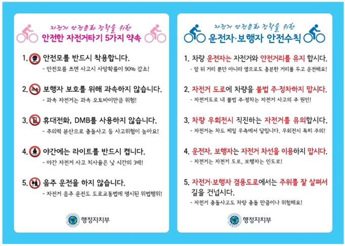 우리나라의 인구 10만명당 자전거 승차 중 사망자수는 0.5명으로 OECD 평균(0.4명)의 1.25배이고, 특히 65세 이상은 2.51명으로 OECD 국가(평균 0.96명) 중 제일 높은 수준 (도로교통공단, ‘16년)이다.