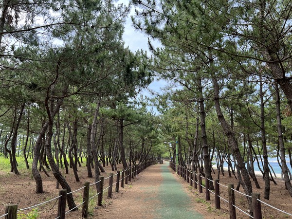 출렁이는 파도 옆 소나무길 걷기