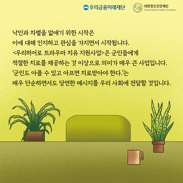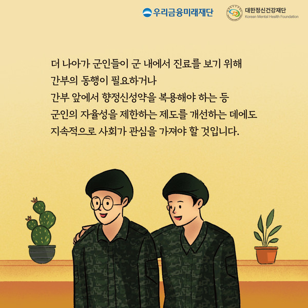 관련기사 "난 아직도 군에 입대하는 꿈을 꿔..." 우리가 트라우마를 만났을 때 복무 적응을 어려워하는 병사들에게 우리 영웅이 잊혀지는 법 정신과 약물이 가지는 정신역동적 의미 정신과 약을 끊는 것이 두려워요