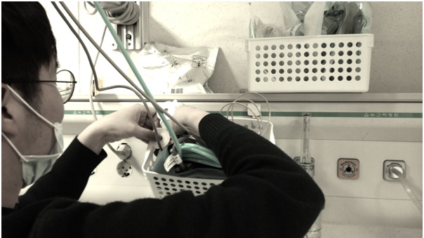 이미 여러 예비 엄마들이 침상에 누워 새 생명과 만날 시간을 기다리고 있는 곳, 분만실입니다. 그런데 그 밖에서 또 다른 산모가 주기적인 진통이 오는 것 같다며 문을 두드립니다. 학생인 저는 침상을 배정하고, 산부인과만의 특별한 문진인 임신 과거력과, 출산 과거력, 그리고 분만 예정일 등을 기록해 당직 산부인과 전공의 선생님께 연락합니다.