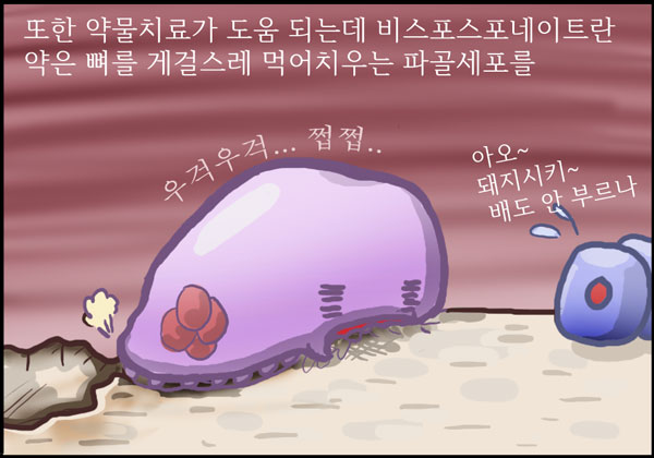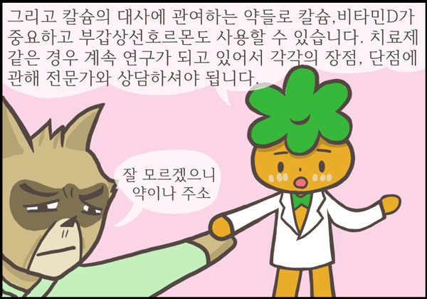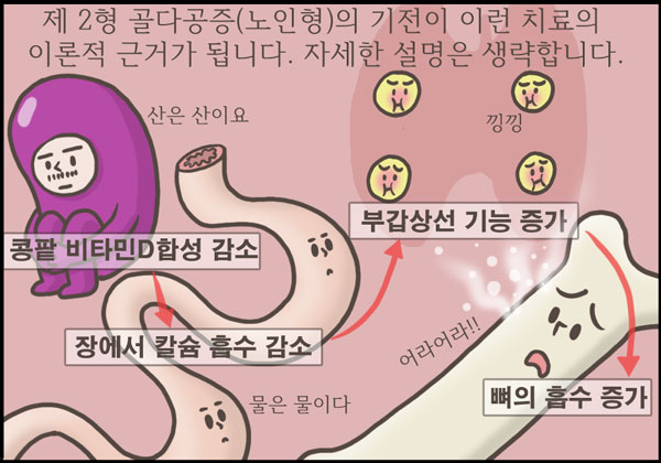 건강한 젊은이들은 사실 뼈에 큰 관심이 없습니다. 큰 사고를 당하지 않는 한 잘 부러지지도 않습니다. 골다공증에 의한 골절은 대부분 폐경기 여성에게 발생합니다. 하지만 당신이 서른 살 넘었다면 당신의 뼈도 (물론 다른 장기들도 마찬가지지만) 이제 내리막길을 걷기 시작했습니다. 관리는 이 만화를 읽은 오늘부터 시작하셔야 합니다.