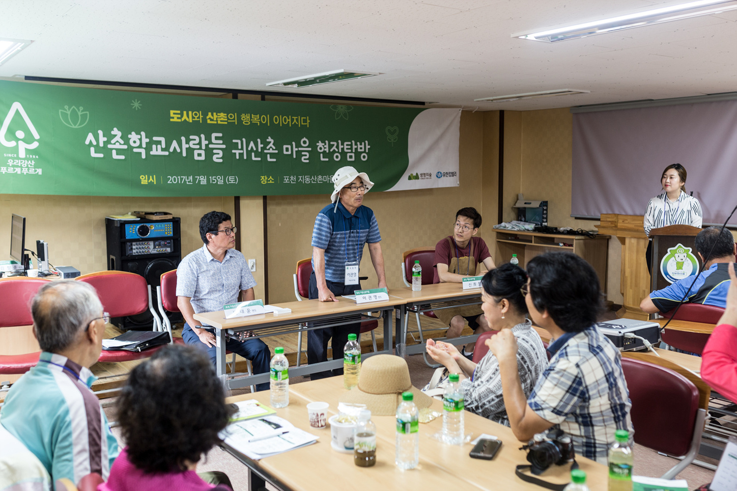 한편, 시니어 산촌학교는 2017년 현재 3기까지 진행되어 120명의 졸업생을 배출하였으며, 귀산촌 전문교육이나 숲과 관련한 다양한 사회활동으로 인생 이모작을 모색할 수 있는 플랫폼 역할을 하고 있다. 특히 기존의 귀산촌 프로그램과 달리 숲을 이해하고 새로운 삶을 설계하는 인문학적 교육 과정이 포함되어 있어, 귀산촌을 고려하는 이들에게 현실적인 고민과 적응을 할 수 있도록 돕는다.