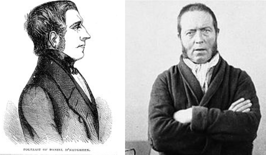 정신장애를 가진 범인에게 면죄부를 주거나 형을 감경해 주는 것은 ‘맥노튼 룰’의 적용에 따른 것이다. 맥노튼 룰은 1843년 영국 수상을 살해하려고 한 다니엘 맥노튼이 범행 당시 피해망상에 시달려 수상을 살해하려고 했다는 점이 인정되어 무죄를 선고 받은 데에서 시작되었다. 당시 맥노튼은 현실 판단이 불가할 정도로 망상이 심각한 상태였던 것으로 보인다. 사건 기록을 찾아 볼 수는 없지만, 아마도 그의 정신세계에 있어서는 수상을 살해하는 것이 정당했을 것이다. 수상을 죽이라는 환청에 시달렸을지도 모르는 일이다. 심한 망상과 환청, 그에 따른 극단적인 행동은, 현실과 그의 정신세계가 상당히 괴리되어 있음을 뜻한다. 당시에는 치료법이 나타나기 전이므로 상태가 매우 심각하였을 것으로 추정된다.