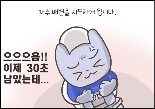 결국 배변을 자주 시도하게 되고 실제로 변이 없는데도 화장실 변기에 앉아 있는 경우가 발생합니다.