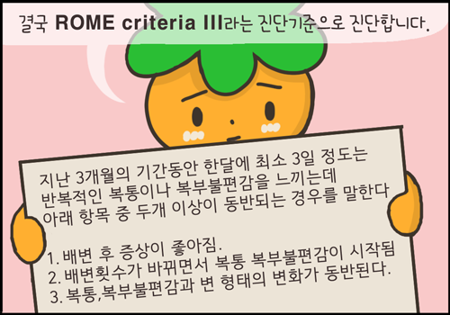 3. 복통, 복부 불편감과 변 형태의 변화가 동반된다.