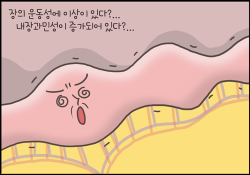 장의 운동성에 이상이 있다. 내장과민성이 증가되어 있다.