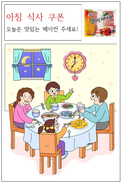 일주일 내에 사용할 수 있는 베이컨 쿠폰 2장을 일요일 밤에 아이에게 주고는 베이컨이 먹고 싶으면 전날 밤에 아이 엄마에게 쿠폰을 주도록 했습니다. 쿠폰이 없으면 베이컨이 없음을 분명히 했습니다. 아이는 월, 화에 쿠폰을 다 쓰고는 남은 날을 툴툴거리기도 했고, 어떤 때는 쿠폰을 아끼다가 1장을 남기기도 했습니다. 아이의 불만은 있었지만 소모적인 실랑이는 많이 줄었습니다. 그렇게 시간이 흘러가자 아침마다 벌어지던 베이컨 전쟁은 끝이 났습니다. 아래 그림은 제가 그때 만들어 썼던 쿠폰입니다.