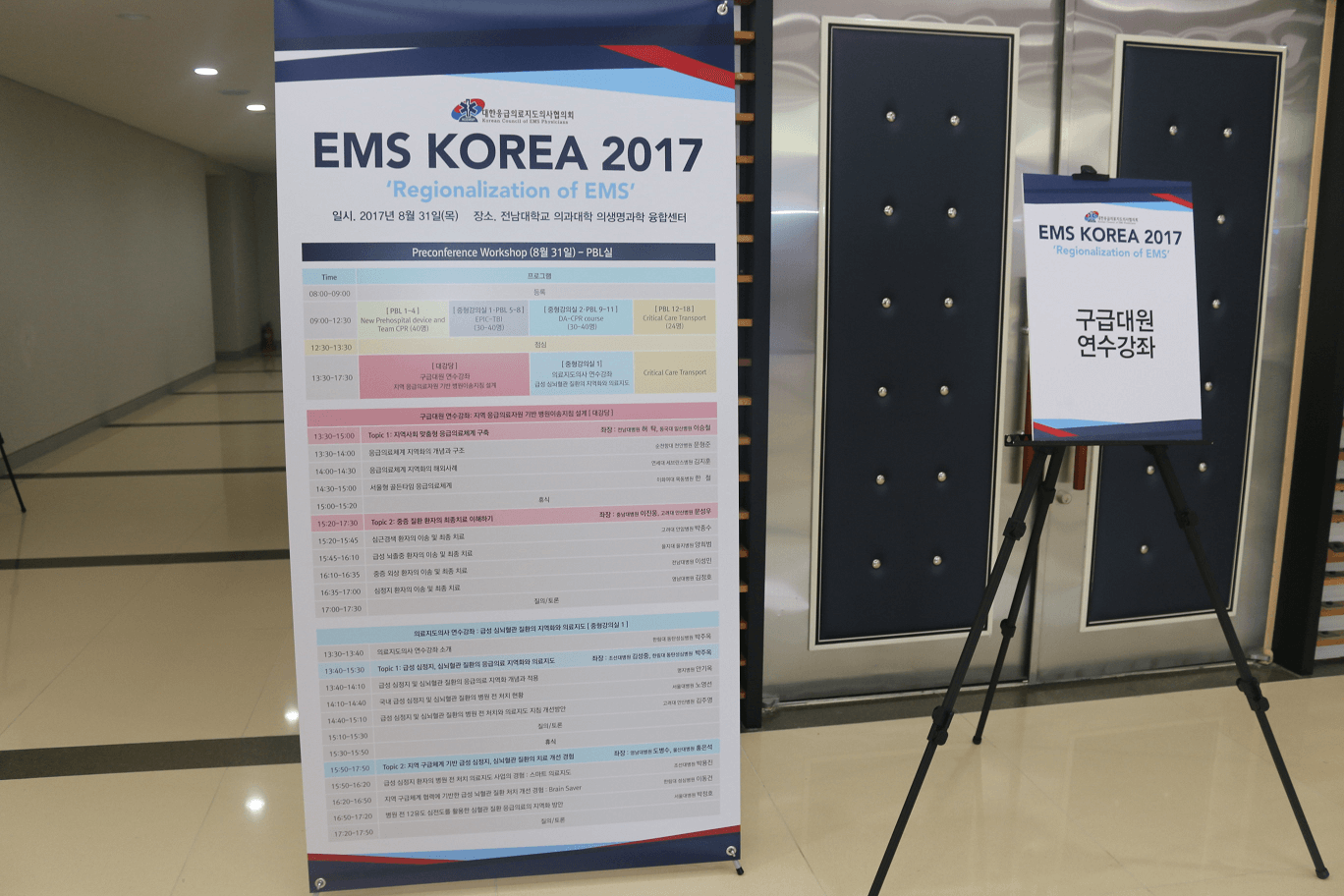 그래서 2017년 8월 말일과 9월 1일, 이 같은 고민에 대한 최선의 해답을 찾아보고자 하는 응급의학과 의료진과 구급대원, 행정가들이 한자리에 모였습니다. 'EMS korea 2017'이라는 제목을 가지고 말이죠. 주제는 '응급의료체계의 지역화'였습니다.