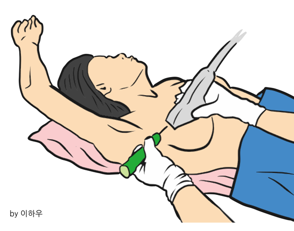 몸 밖으로 조직을 꺼낸다니, 말만 들어도 벌써 긴장되게 하는 검사입니다. 그렇지만 유방암 유무를 확인하는 가장 확실하며 꼭 필요한 검사입니다. 과거에는 이런 조직 검사라는 말이 없었습니다. 대부분 외과적으로 절제하여 진단하였습니다. 그렇지만, 최근에는 이러한 외과적인 절제보다 영상을 바탕으로 시행하는 조직 검사(생검이라고도 합니다)가 외과적 절제에 비하여 흉터가 작고 회복이 빠르고 짧은 시간에 저가의 비용으로 할 수 있어서 유방 촬영이나 초음파 후 발견된 이상 소견에 대하여 1차적으로 시행하는 시술이 되었습니다.