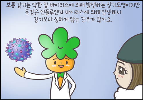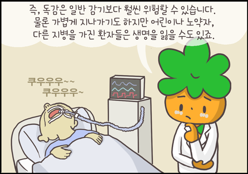 독감은 일반 감기보다 중증으로 올 수가 있는데, 건강한 성인에서는 가볍게 지나가기도 하지만 어린이나 노약자, 다른 지병을 가진 환자들은 생명을 잃을 수도 있습니다.