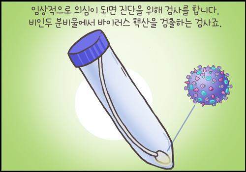 임상적으로 의심이 된다면 비인두 분비물에서 바이러스의 핵산을 검출하는 검사를 실시해야 합니다. 독감 바이러스가 비인두의 분비물, 콧물에서 검출될 수 있기 때문이죠.
