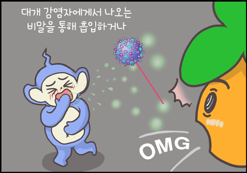 일차적으로 감염자에게서 직접 나오는 비말에 있는 바이러스를 흡입한 경우에 독감에 감염될 수 있습니다.