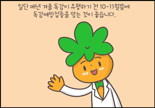 일단 매년 겨울 독감이 유행하기 전 10~11월쯤에 독감예방접종을 맞는 것이 좋습니다.