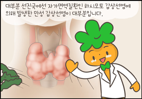 대부분의 선진국에서는 자가면역질환인 하시모토 갑상선염에 의해