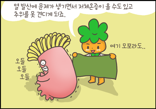 열 발산에 문제가 생기면서 저체온증이 올 수도 있고 추위를 못 견딥니다.