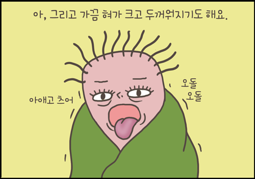 혀도 크고 두꺼워지고요…심한 경우에는