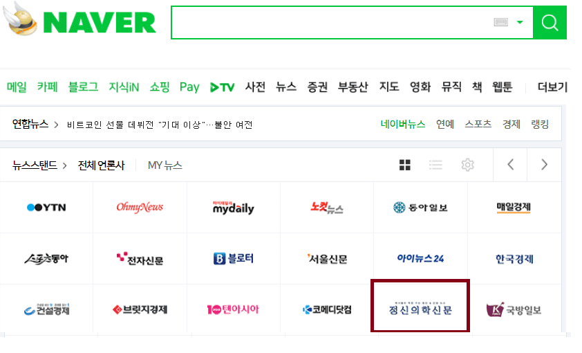 네이버 메인 화면의 뉴스 스탠드를 통해 매거진/전문지 코너의 정신의학신문 페이지에서 페이지 좌측 상단 '구독하기'를 클릭하면 MY 뉴스로 설정되어 매일 정신의학신문의 새로운 정신의학 칼럼과 기사를 네이버 메인 화면을 통해 접할 수 있게 된다.