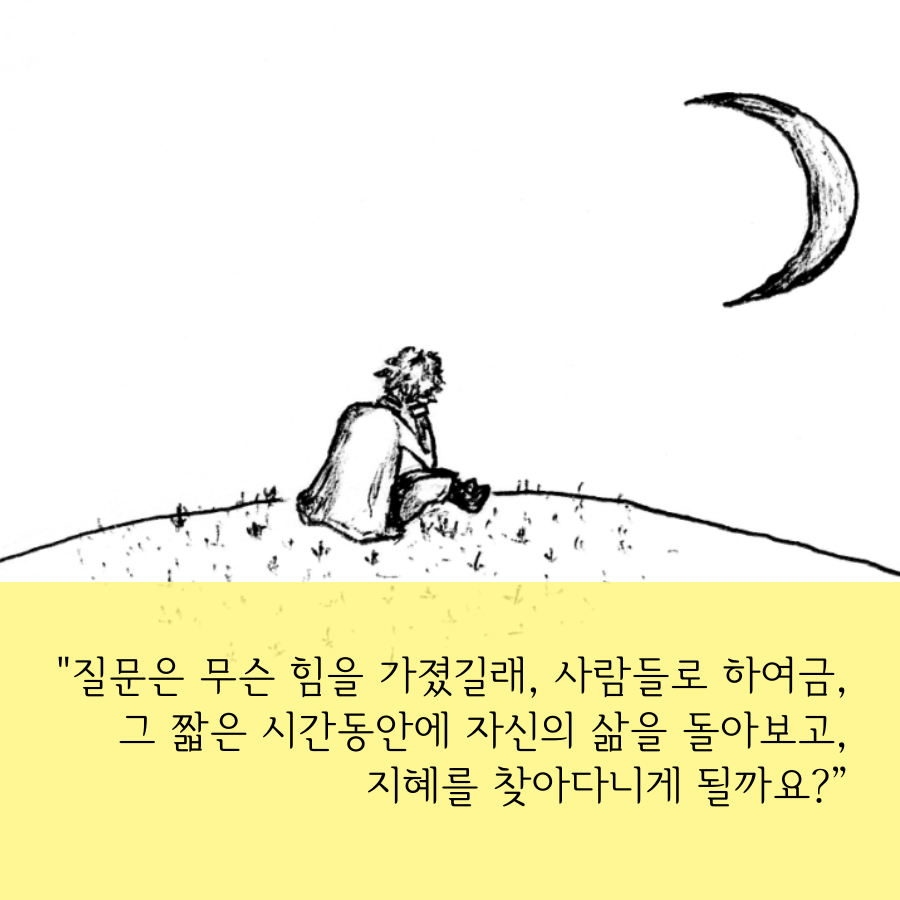“질문은 여러 생각들 중에 가장 현명한 생각을 찾아내게 하는 것 같아.”