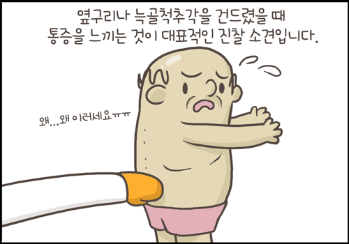 옆구리나 늑골척추각을 건드렸을 때 통증을 느낀다면 요로결석일 가능성이 더욱 높습니다. 콩팥이 위치한 곳이거든요.