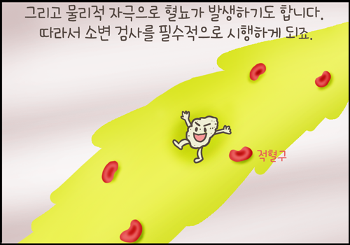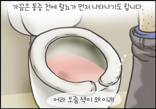 가끔은 통증을 느끼기 전에 혈뇨가 먼저 나타나기도 하고요.