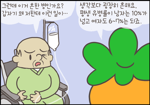 요로 결석은 생각보다 굉장히 흔합니다. 평생 유병률을 따지면 남자가 10%가 넘고 여자도 6~7%는 됩니다.