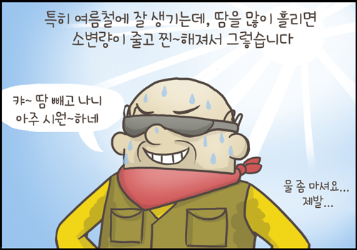 특히 여름철에 잘 생기는데 땀을 흘리면서 탈수가 되니까