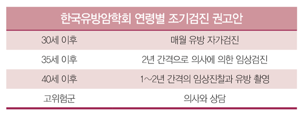권고안에 따르면 만 35세가 되면 의사를 처음으로 만나서 검사하라고 되어 있습니다. 그리고 40세가 되면 유방 촬영을 시작하게 됩니다. 그런데 이런 국가의 검진 권고안을 따르는 여성분들은 아주 많지는 않습니다.
