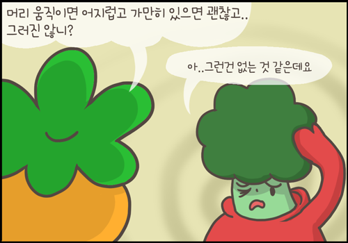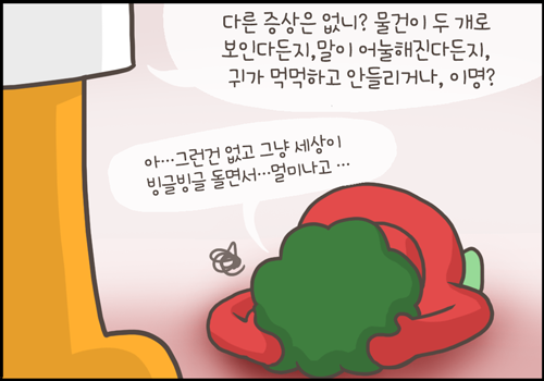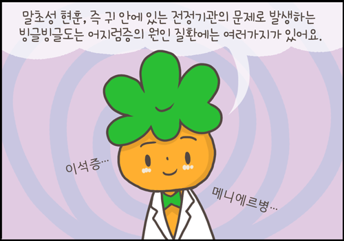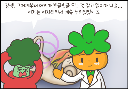 머리가 빙글빙글 도는 어지럼증이 나타나고