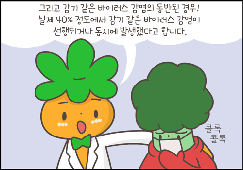 실제 40% 정도에서 감기 같은 바이러스 감염이 선행되거나 동시에 발생했다고 합니다. 물론 60%는 없으므로 절대적인 기준이 되지는 못하지만 말입니다.