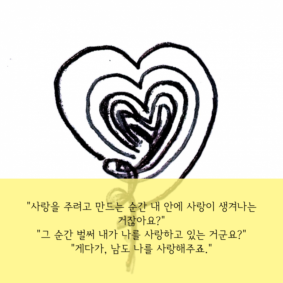 “내 안에 사랑이 생겨나는 순간, 벌써 내가 나를 사랑하고 있는 거군요?”