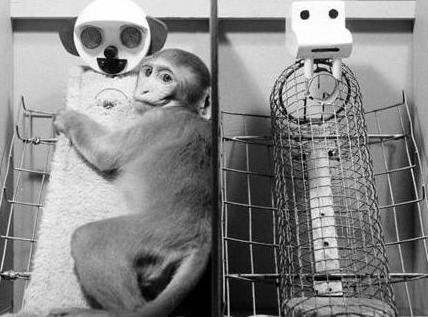 할러(Harlow)는 ‘아이들은 우유만으로 살수 없다’는 사실을 새끼원숭이 실험으로 보여주었습니다. 할로는 원숭이에게 두 가지 형태의 어미 대용물을 주었습니다. 한 어미에게는 젖병을 달아두고, 다른 어미에게는 타월 천으로 몸을 감싸두었습니다. 그리고 새끼원숭이들이 어느 쪽을 더 좋아하는지, 누구를 선택하는지 살펴보았습니다. 그 결과 새끼원숭이들은 젖을 주는 어미가 아니라 타월 천으로 만든 어미를 선택했습니다.